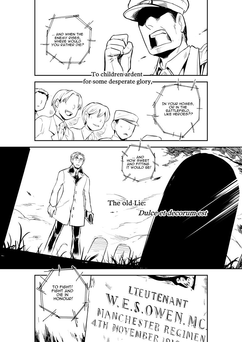 Adapted from a poem written by Wilfred Owen, the story illustrates the character’s experience during the trench war, and the irony of soldiers participation to take arms in war.